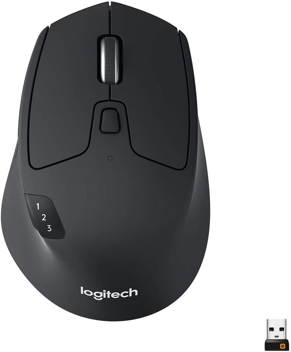 Logitech M720 Triathalon Multi-Device Wireless Mouse – Easily Move Text, Images and Files Between 3 Windows and Apple Mac Computers Paired with Bluetooth or USB, Hyper-Fast Scrolling, Black