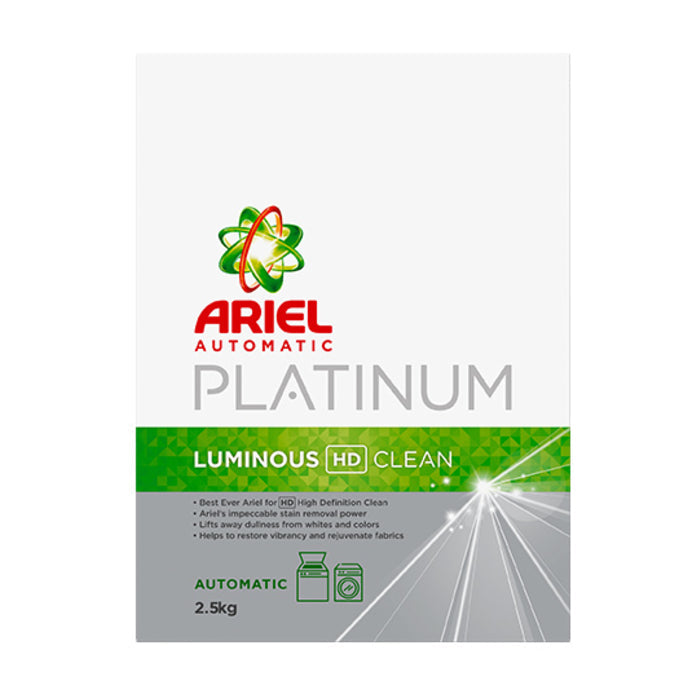 Ariel Platinum Washing Powder 2.5kg cleans effectively with up to four times more stain removal power than conventional detergents and is suitable for all washing machines. Its special enzymes target tough stains and can remove them up to 100% to give you brilliant cleaning results.