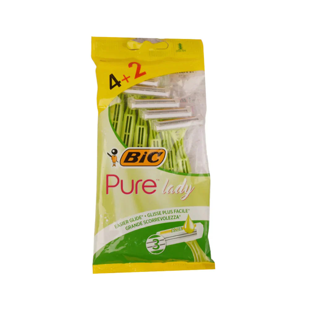 The BIC RAZORS PURE LADY 3 4+2 PC features two lubricating strips enhanced with natural oils to reduce irritation. These razors also have an ergonomic non-slip handle, offering greater comfort and control while you shave. With 4 blades for an ultra-smooth shave, it's the perfect tool for achieving a clean and comfortable shave.